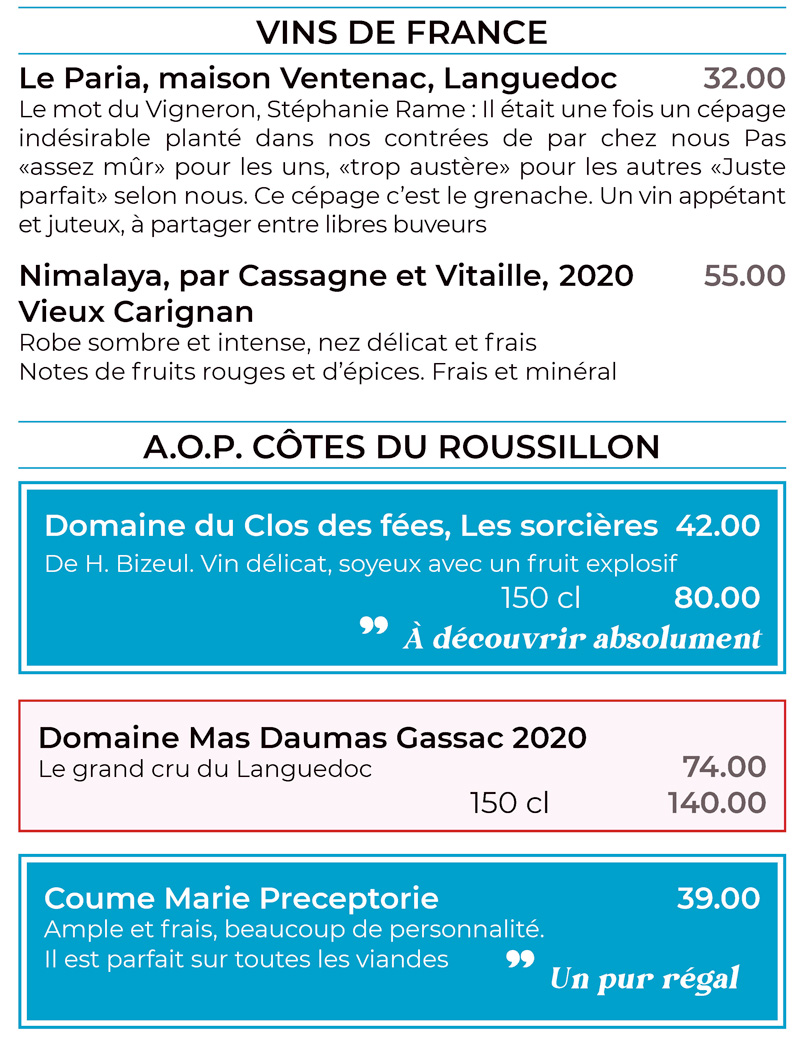 Demandez notre Cocktail du Jour ou suggestion du moment